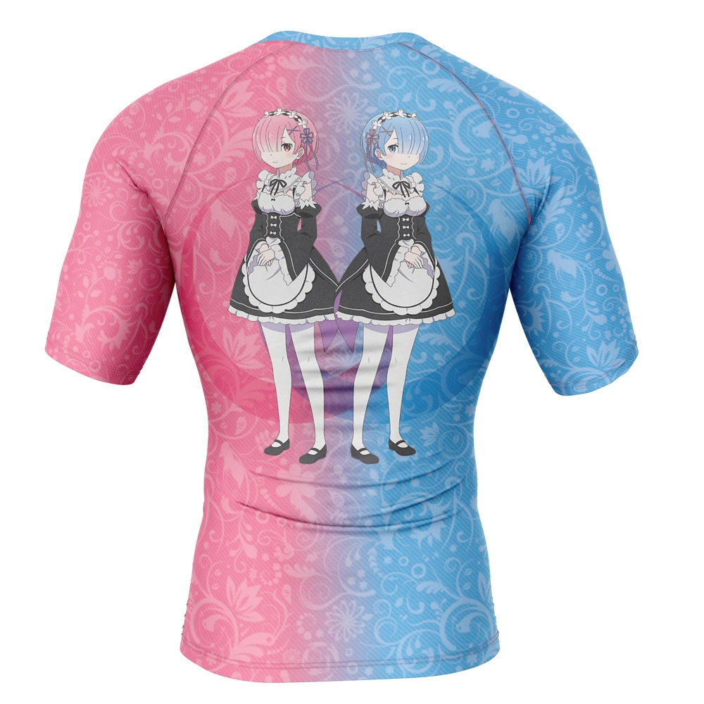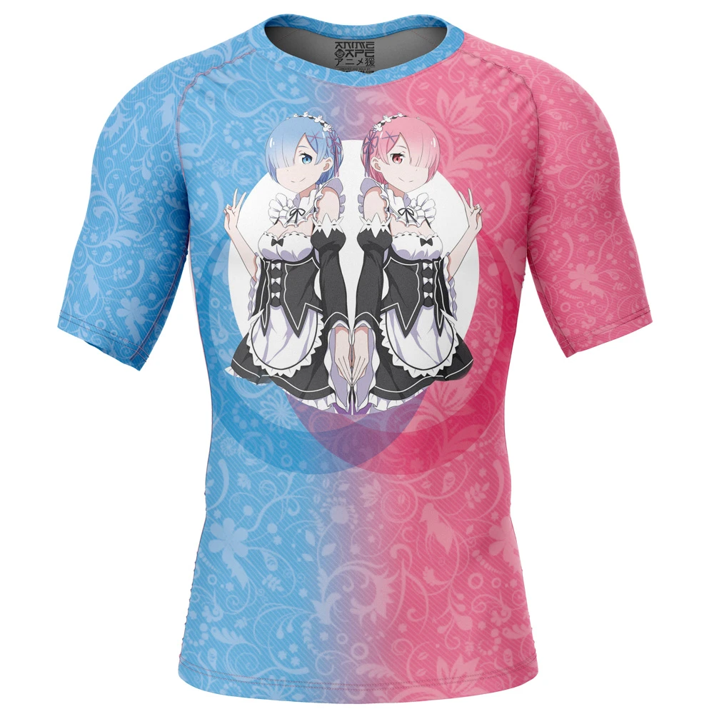 Rem And Ram Re Zero Kara Hajimeru Isekai Seikatsu Short Sleeve Rash Guard Compression Shirt